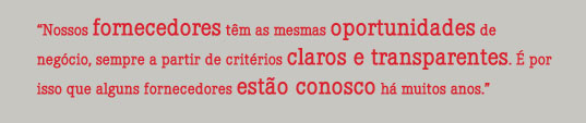 A Rossi tem como princípio prezar o relacionamento com seus fornecedores de maneira sólida, em longo prazo, com transparência e ética. Para tanto, as equipes de Suprimentos das Regionais adotam um manual que detalha os processos de qualificação de fornecedores de materiais e serviços. A Empresa mantém acordos de fornecimento e alianças estratégicas para os principais insumos e serviços com fornecedores-chave e monitora regularmente os principais indicadores