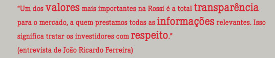 Nos últimos anos, a Rossi realizou investimentos que prepararam a Empresa para o aumento da demanda do mercado imobiliário, como a adoção de um sistema informatizado de gestão e a formação de uma equipe de colaboradores competente e motivada. Essa estratégia de crescimento sustentado revelou-se acertada, tendo em vista os resultados obtidos a partir de 2006.